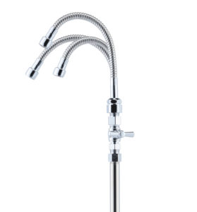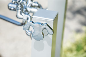 設置場所を自由に変えられるホース接続仕様の立水栓。