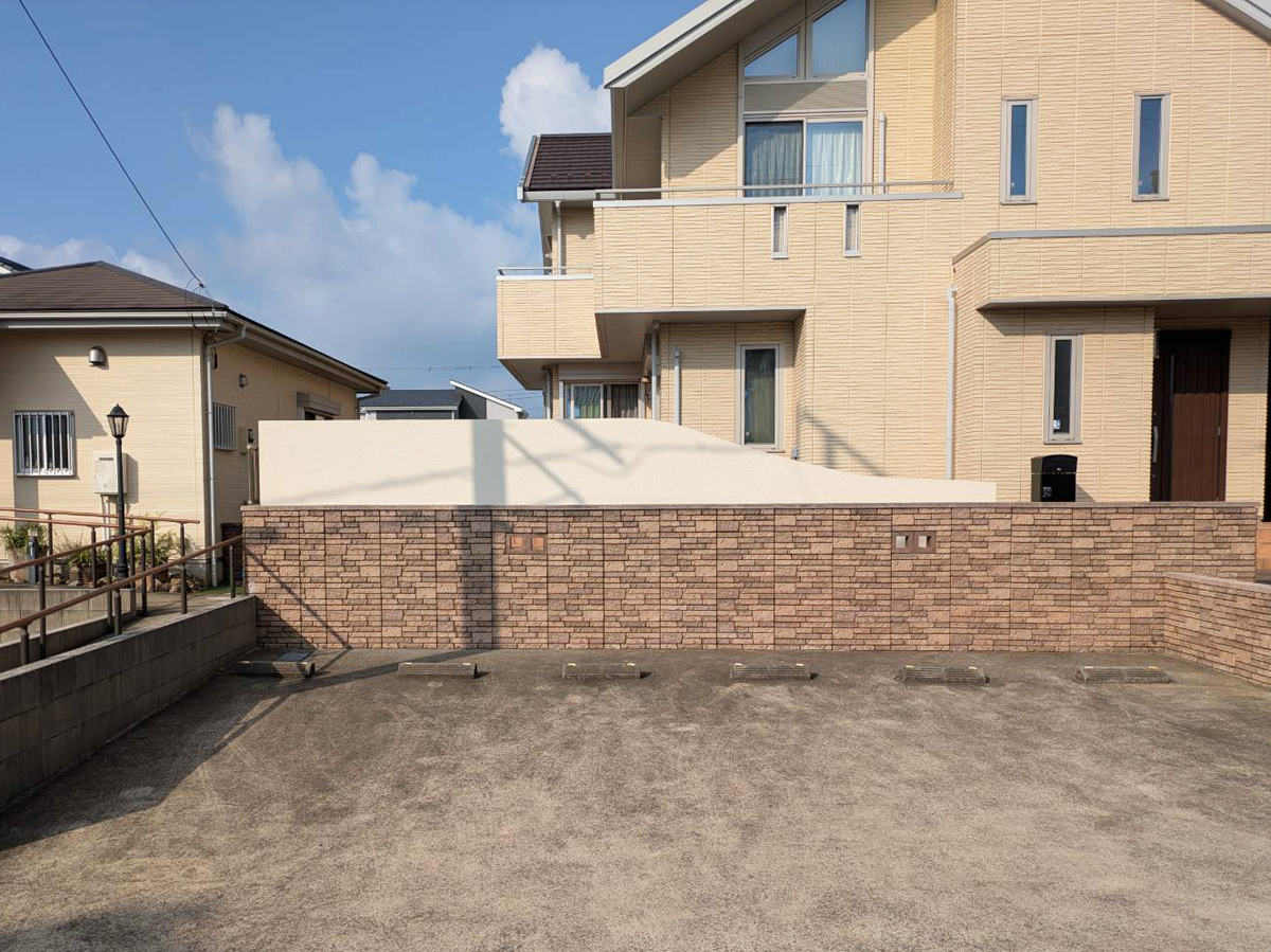 道路側の既存のスクリーンブロックに合わせて一部をくり抜いた下には『グランドライト オルテックS グレアカット』を配置。