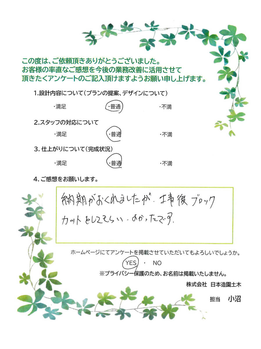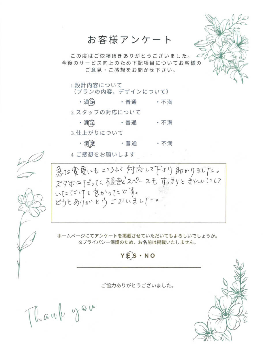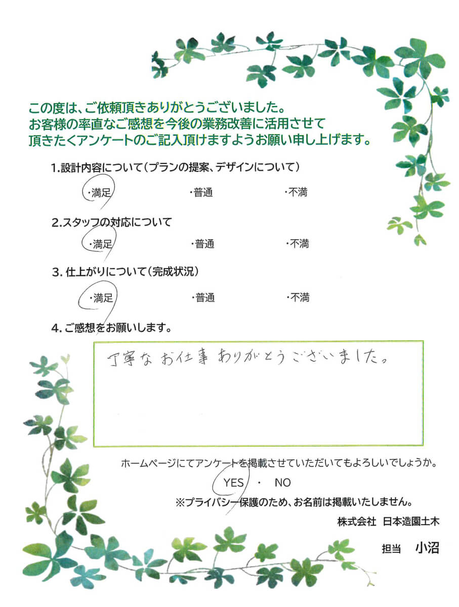 この度は弊社に外構工事をご依頼いただき、誠にありがとうございました。